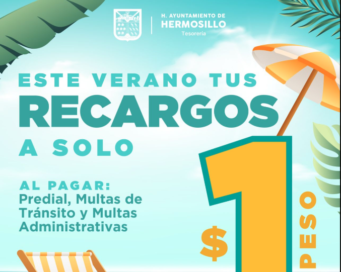 Invita Tesorería Municipal a aprovechar la promoción de pago de recargos a un peso hasta el 31 de julio 30 julio, 2025 Contribuyentes del Municipio de Hermosillo que deseen ponerse al corriente aún pueden aprovechar para liquidar...